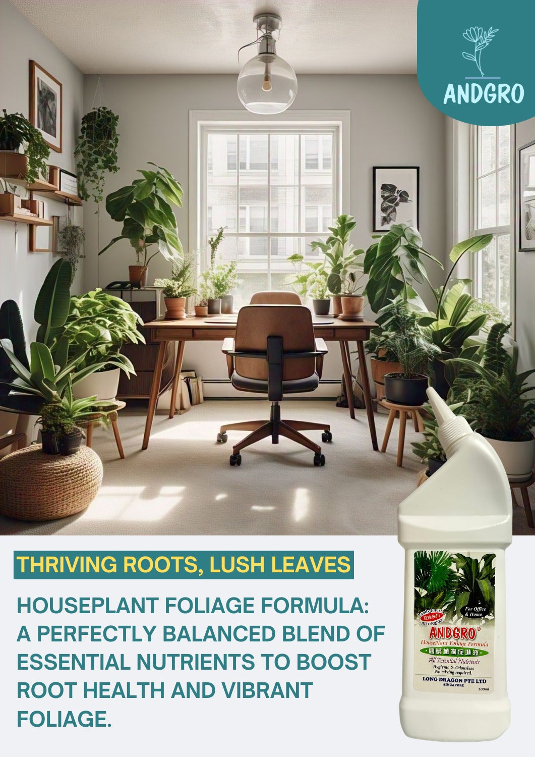 Deep, healthy roots are the foundation of a thriving plant. Andgro House Plant Foliage Formula strengthens root development, ensuring your plants have the stability and resilience to grow.