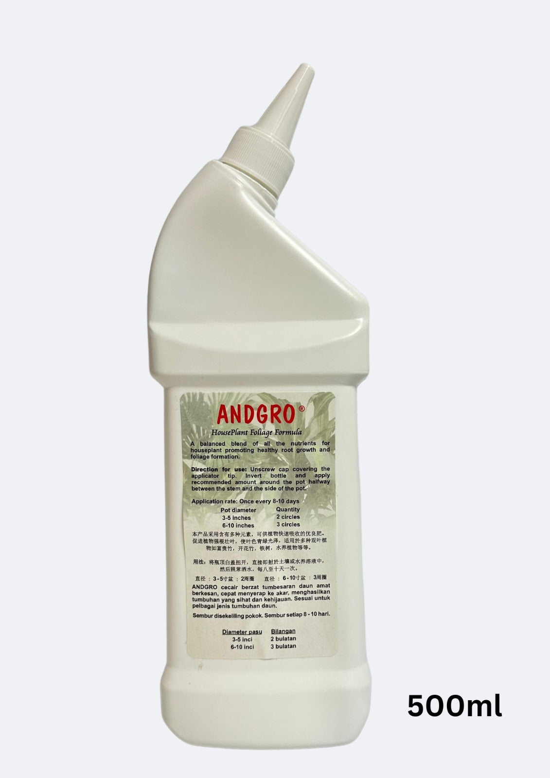 For best results, apply the Andgro House Plant Foliage Formula once every 8 to 10 days. This consistent feeding schedule will keep your houseplants thriving and looking their best year-round.