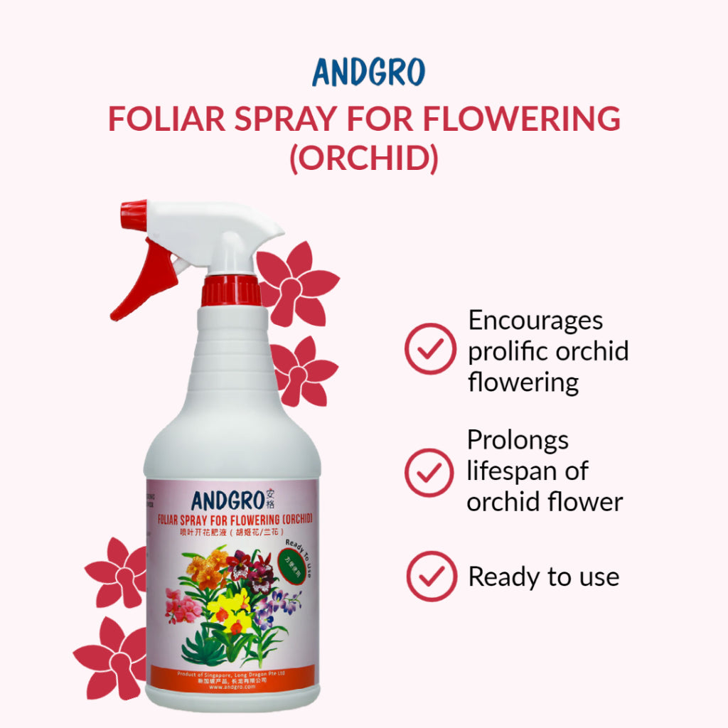 - Spray ANDGRO Orchid Flowering on the leaves and base of your Orchid plant once every week.