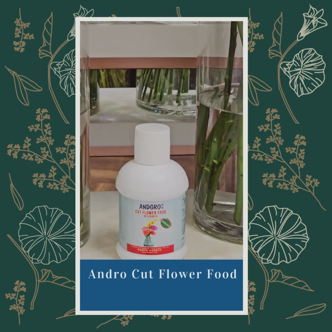 Mix 1/2 capful of ANDGRO Cut Flower Food with 1 litre of water. Fill clean container with solution. Remove foliage from stem which is below water line. Cut flower stem diagonally. Place in container and enjoy!